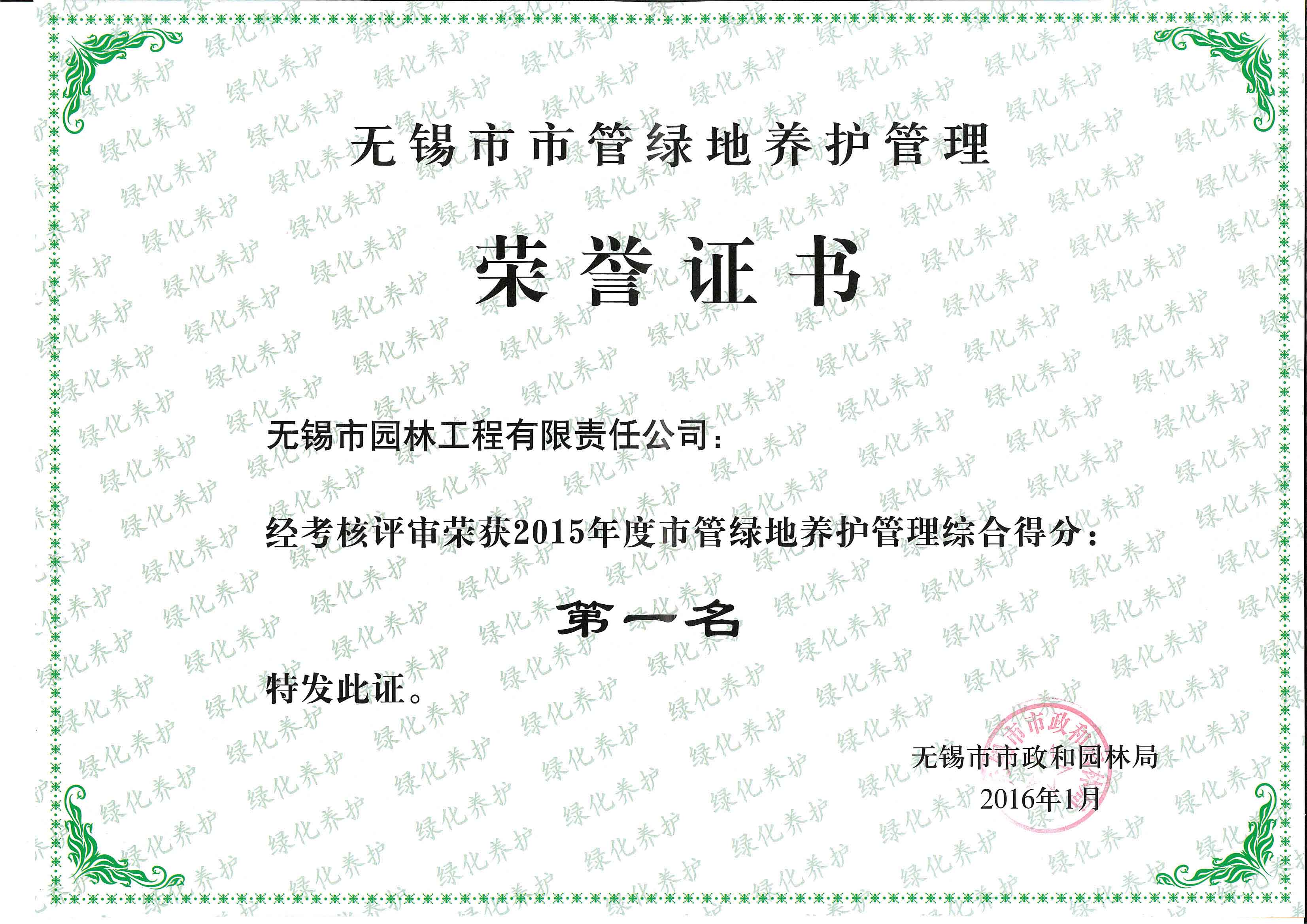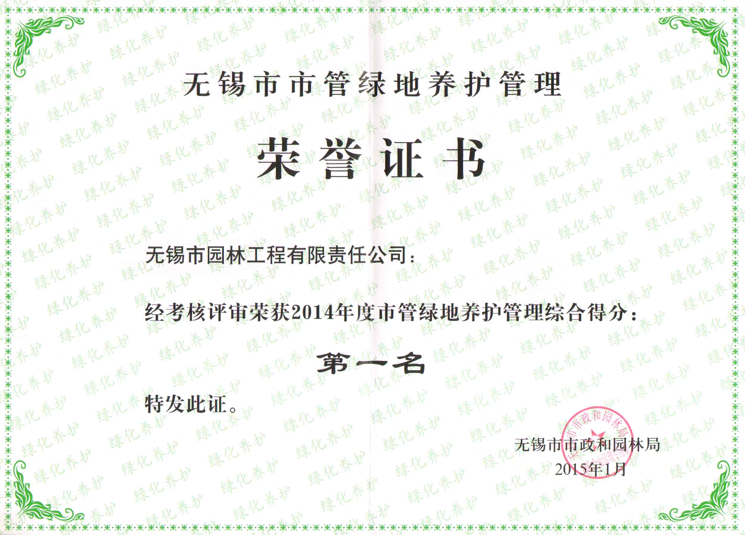 2015年度無錫市園林綠化明星企業(yè)