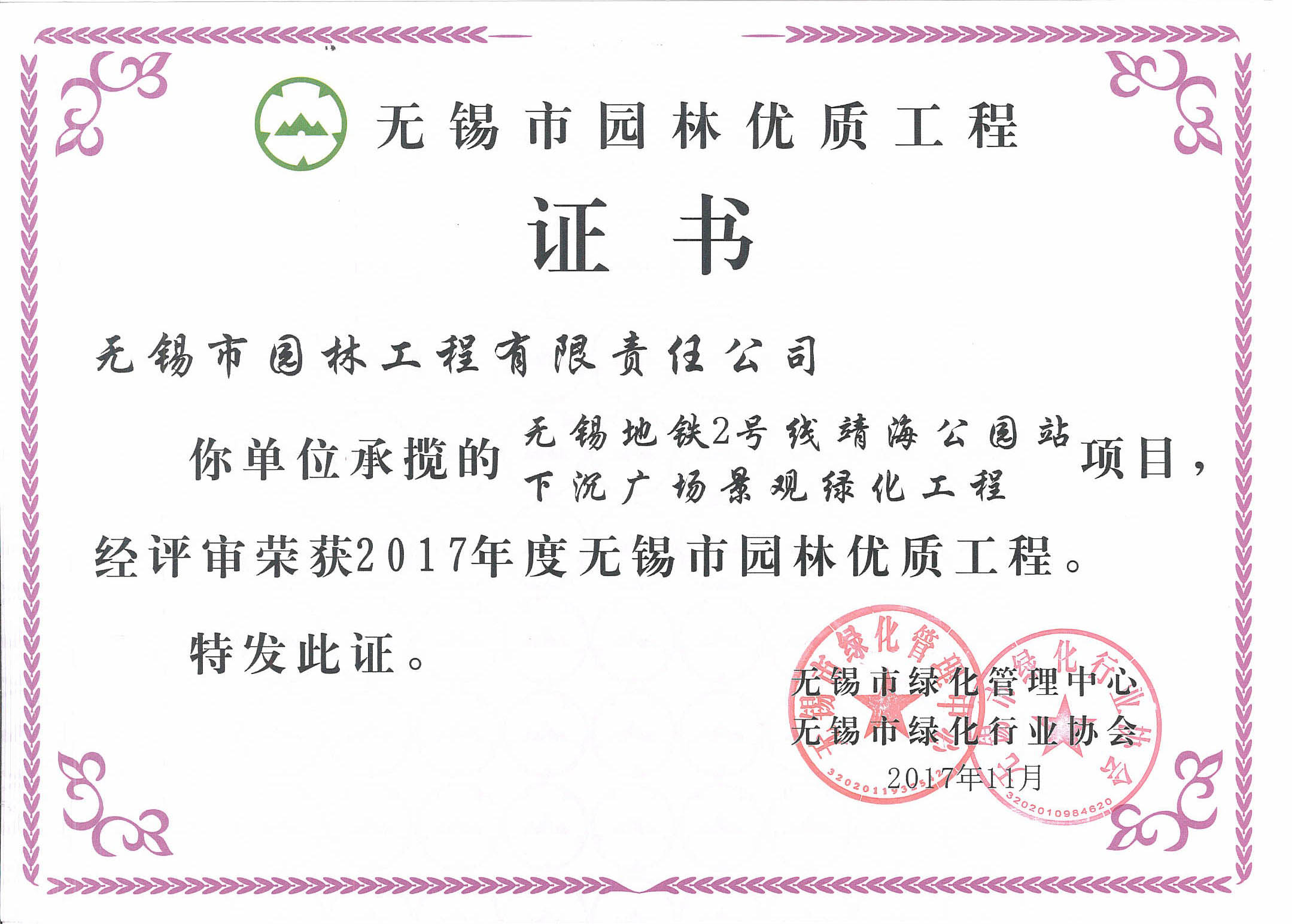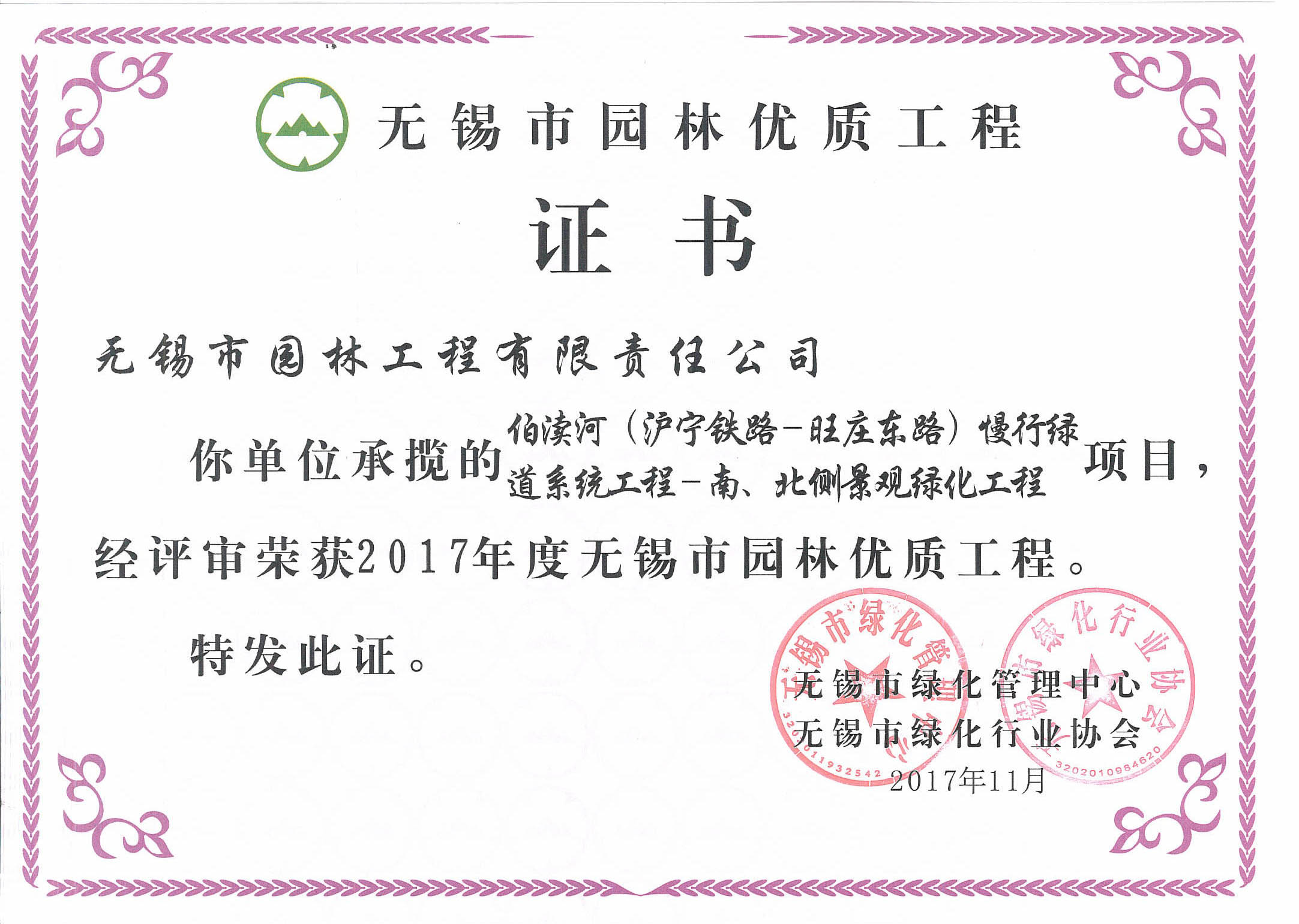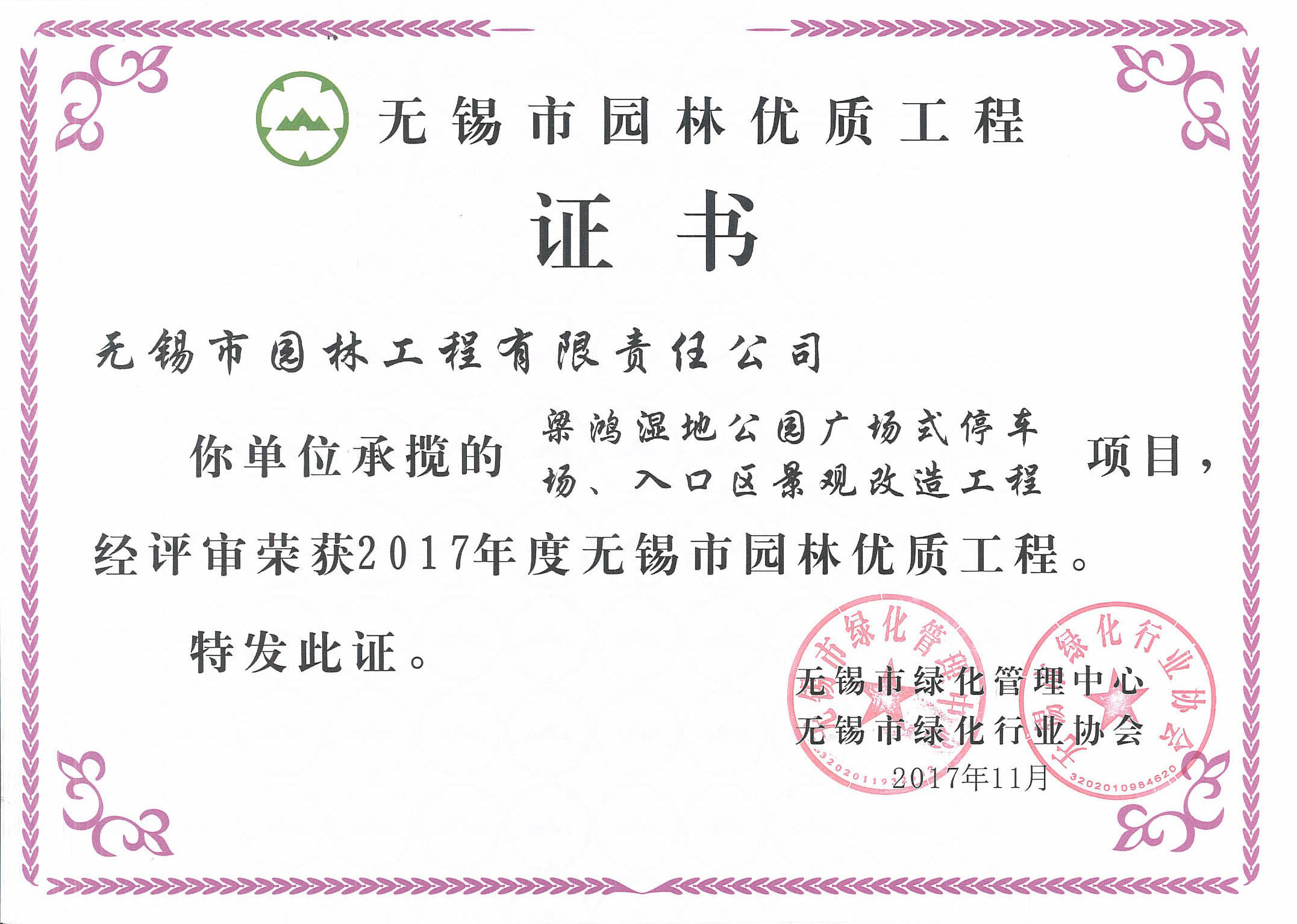 2017年度無錫市太湖杯優(yōu)質工程